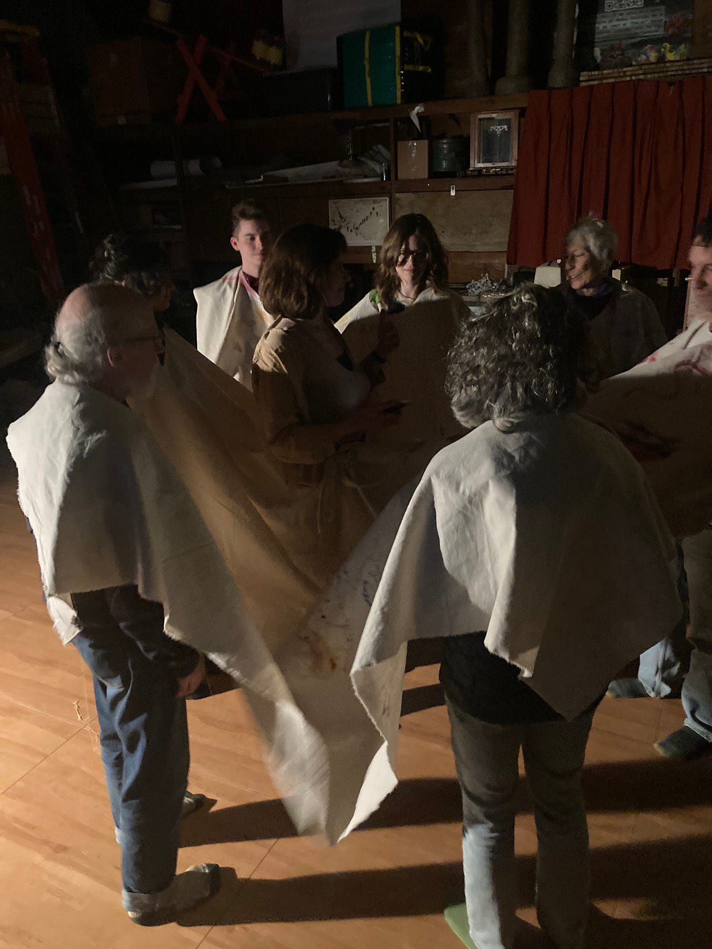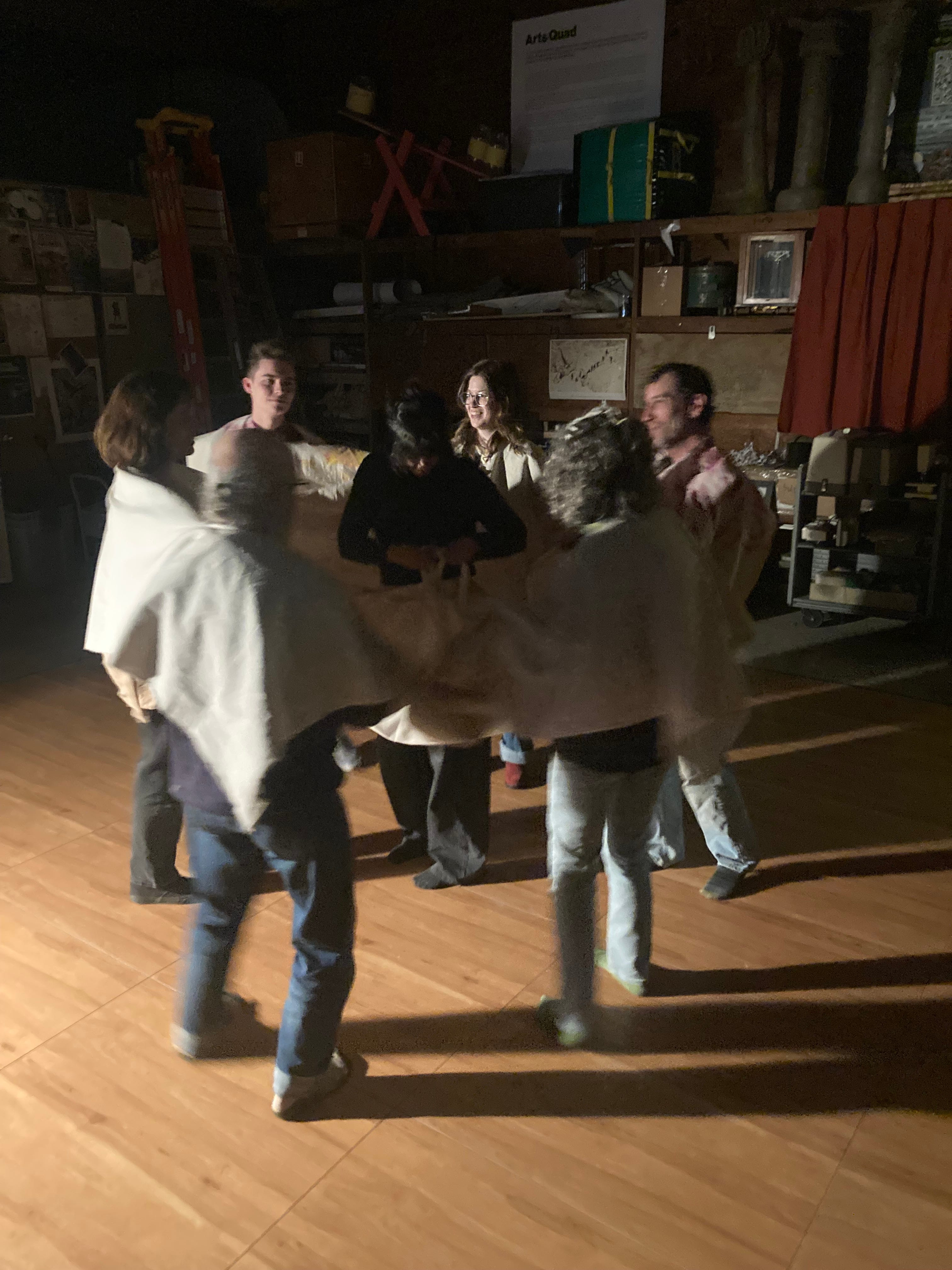 For a new iteration of this work, I hope to have a larger canvas that is more richly painted, allowing for a greater distance between members and coverage of their bodies.
