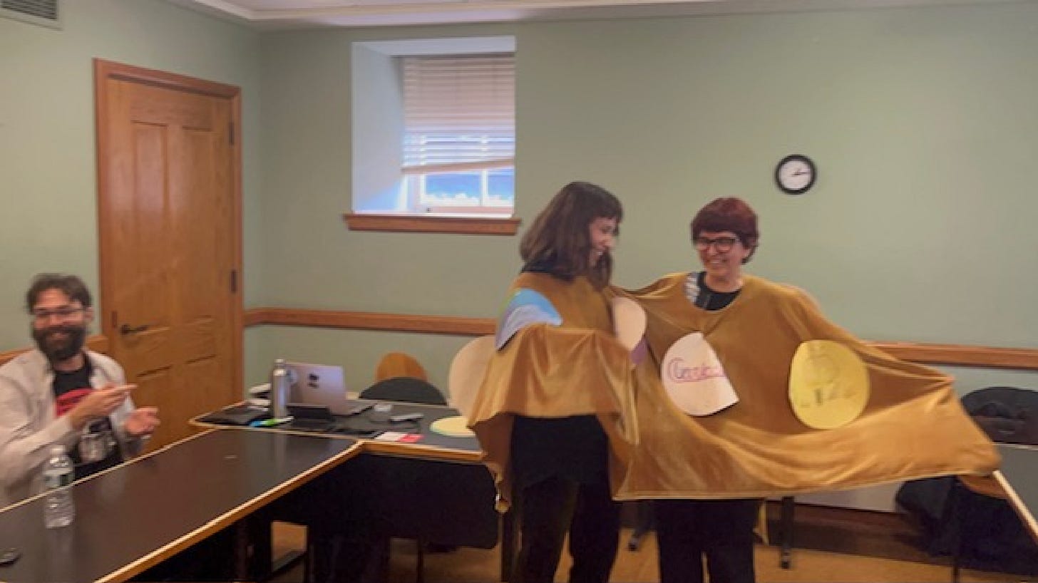 I’m profoundly grateful to Prof. Osborne for this opportunity to think and make the Pyrocolengo in the classroom context, and to dance with me in the Pyrocolengo we created. These are experiences that will continue to reverberate in my practice and that I will continue to make meaning with in the years to come.