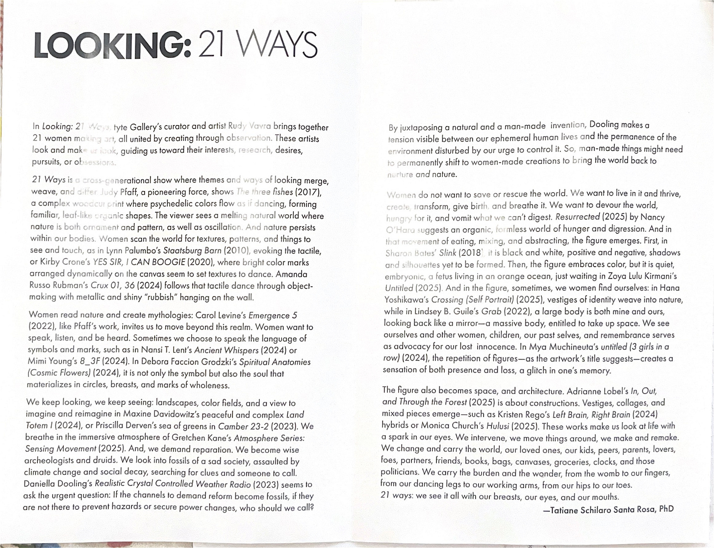 I’m writing you a note on this Thursday Painting series of emails to let you know that my painting Spiritual Anatomies, is currently exhibited (and for sale!) at Looking: 21 Ways, an exhibition curated by Rudy Vavra at Tyte Gallery. I am delighted that Vavra selected this specific painting for this exhibition, as this is a work that helped me bridge the public-facing and the private parts of my studio practice (read more about it below!). It makes sense to me then that this painting would come out of my home-studio walls to be sold by an art gallery and then go on to live in some other place!